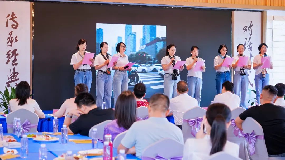 在商会会长及商会代表的带领下,全场响起了优美的读书声。朗朗书声,浸润心田,声音清澈而庄严,仿佛穿越了时空的隧道,汇聚成一股洪流,在会场内回荡,每一个音符都营造出浓厚的仪式感,令在场每个人沉浸其中。众人齐声诵读,脸上洋溢着专注与共鸣,声音穿透空气,在会场的每一个角落激起涟漪。通过这种集体互动的读书方式,大家不仅深入体会了家训中关于家族团结、诚信待人以及世代传承的精髓,还进一步强化了彼此间的集体归属感。心与心相连,使《朱子家训》的教诲如春雨般滋润心田,深深烙印在每个人的记忆中。