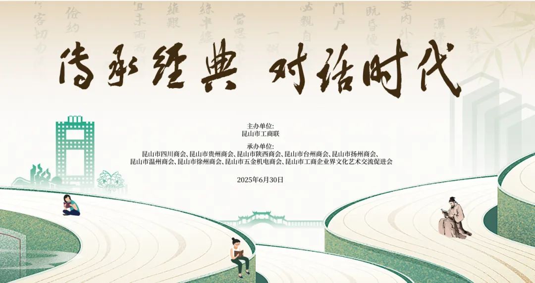 2025年6月30日由昆山市工商业联合会主办,昆山市四川商会、昆山市贵州商会、昆山市陕西商会、昆山市台州商会、昆山市扬州商会、昆山市温州商会、昆山市徐州商会、昆山市五金机电商会、昆山市工商企业界文化艺术交流促进会共同承办的“传承经典 对话时代”书香“益企”阅读活动在大唐生态园隆重举办。